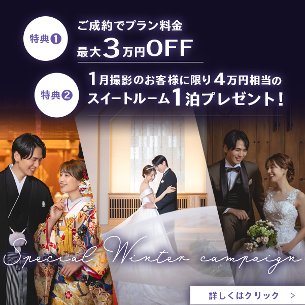 雨や曇りなど天候を気にする必要がなく、暑さでメイクが崩れたり、強風で髪が乱れる心配もありません。スタッフが常にあなたを完璧な状態に整えます。 また、スタジオがホテル内にあるため、衣裳やメイクチェンジなどの移動も最小限で済み、ご親族の方も安心してご見学いただけます。
